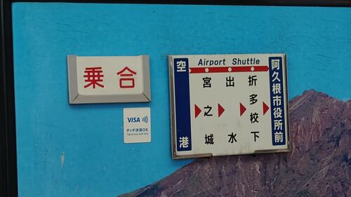 便名 : 便名なし日付 : 2022/11/xx区間 : 鹿児島空港(09:15)→阿久根市役所前(11:17)所要時間 : 02:02乗車クラス : 普通席(座席定員制)運賃 : 2,000円(Visaタッチ決済)運行 : 南国交通